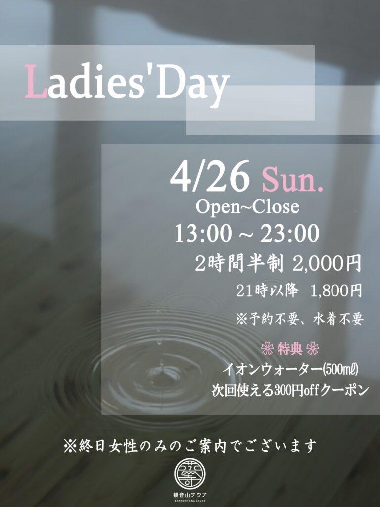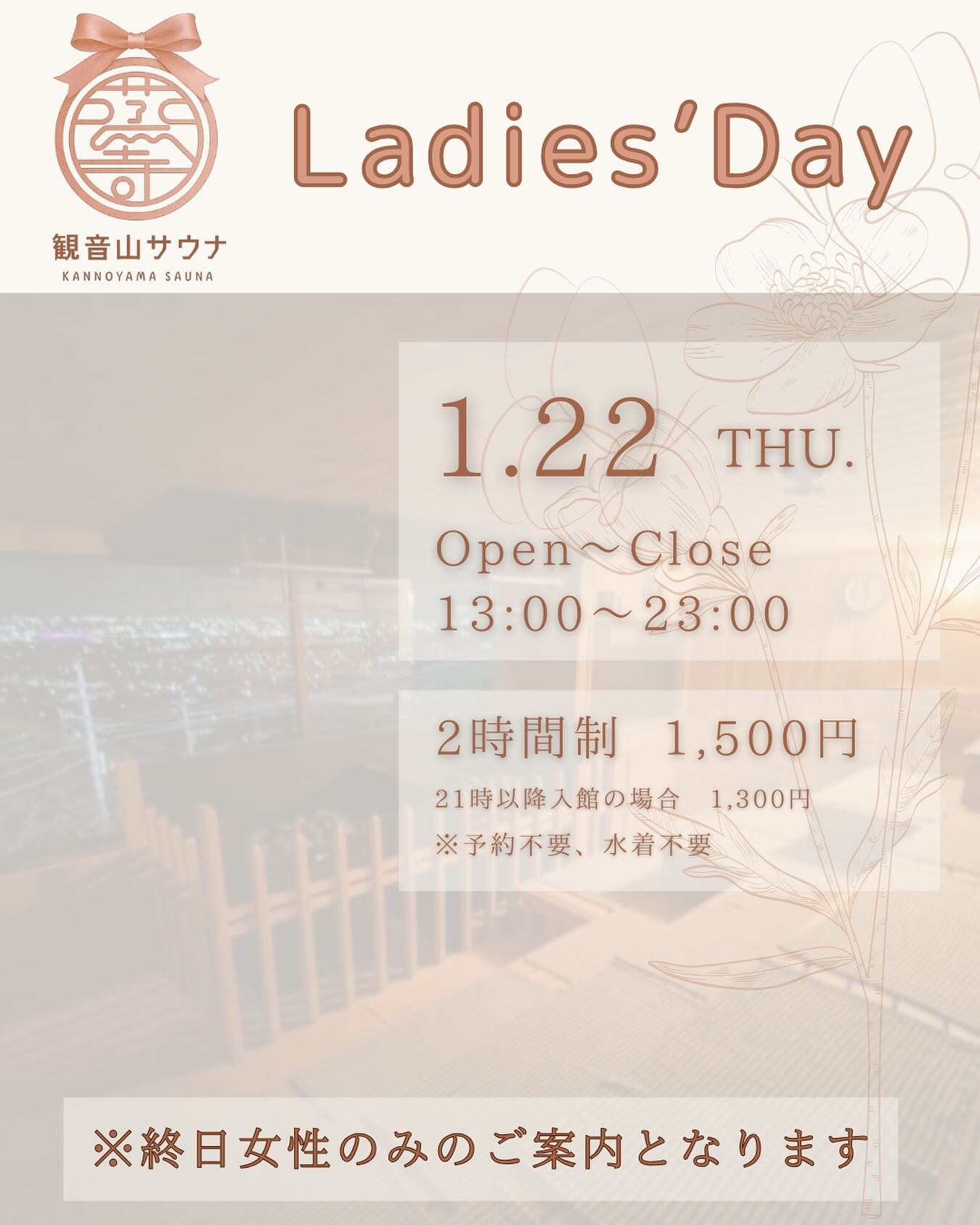 『観音山サウナ蒸寺」レディースデイを開催いたします。